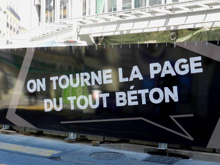 « On tourne la page du tout béton » paroles d’un arracheur de dents. Photo prise rue Anatole-France à Montpellier, le vendredi 1er juin 2018. Copyright : Anje34