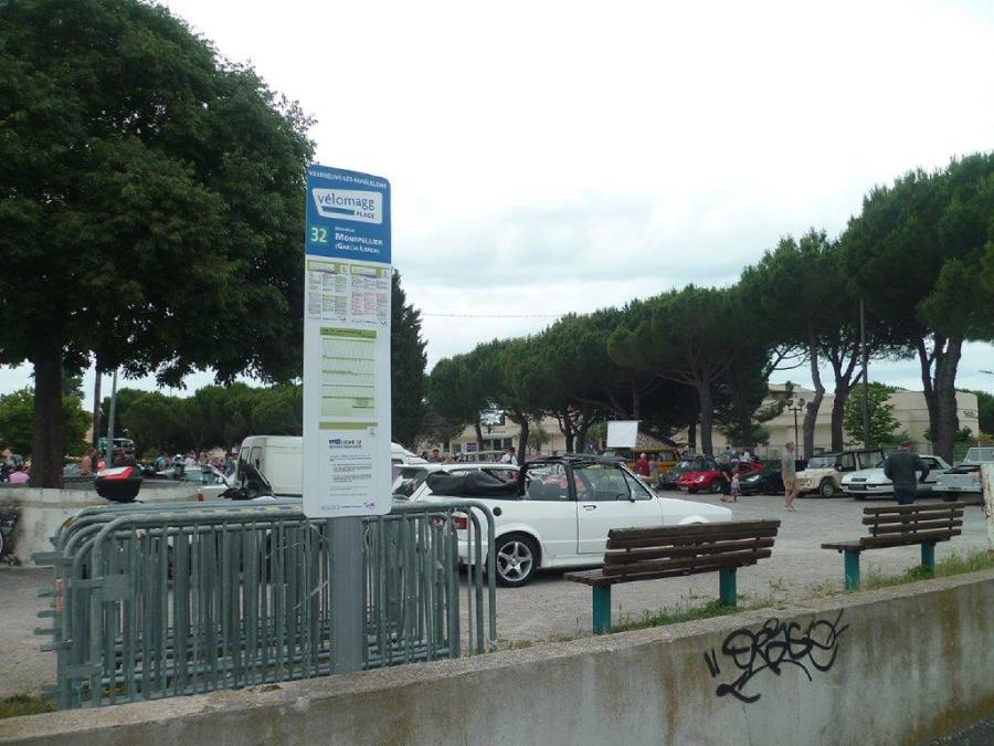 Emplacement du totem Vélomagg plage de la ligne 32, boulevard des Moures à Villeneuve-les-Maguelone, photographié le dimanche 3 juin 2018. Copyright : Edouard Paris