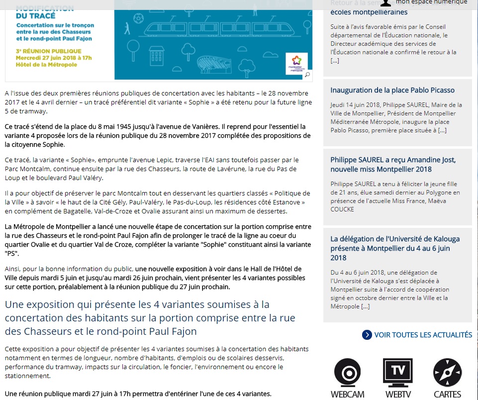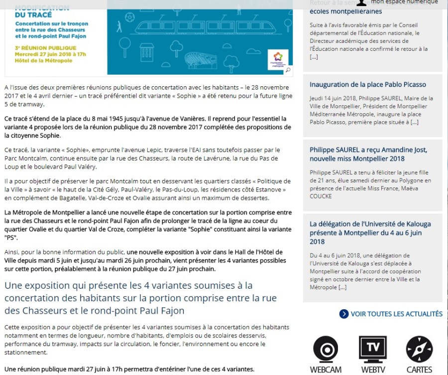 Capture d’écran d’une page du site internet de la ville de Montpellier faite par le webmestre le dimanche 24 juillet 2018. Une coquille s’est glissée en dernière ligne