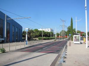 - A une centaine de mètres du parvis nord-ouest de la gare de Montpellier Sud de France, l’arrêt « Cambacérès » direction « Place de France » est photographié le samedi 30 juin 2018 à une semaine de sa mise en service. Copyright : Edouard Paris
