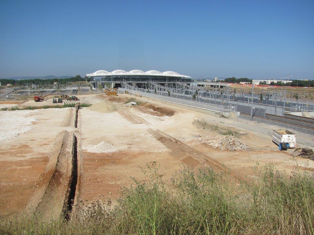 Le parvis sud de la gare de Montpellier Sud de France est situé au second plan à gauche. Photo prise depuis le pont Youri-Gagarine, le samedi 30 juin 2018. Copyright : Edouard Paris
