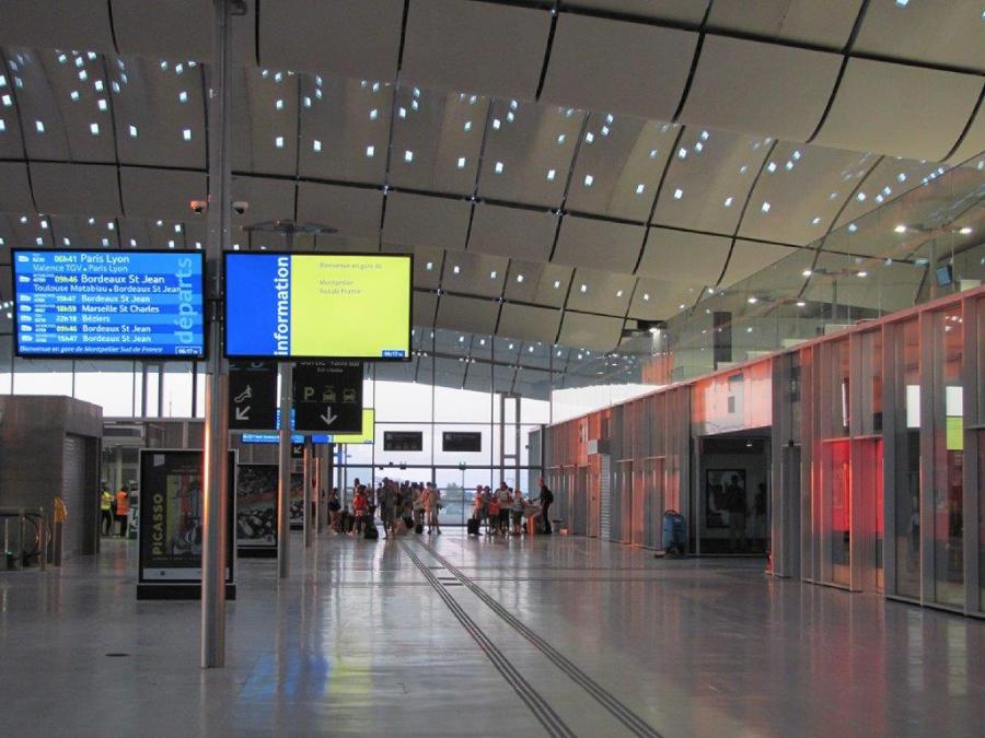 Aperçu d’une partie du hall voyageurs de la gare de Montpellier Sud de France où on ne se bousculait pas, le samedi 7 juillet 2018 à 6h17. Copyright : Edouard Paris