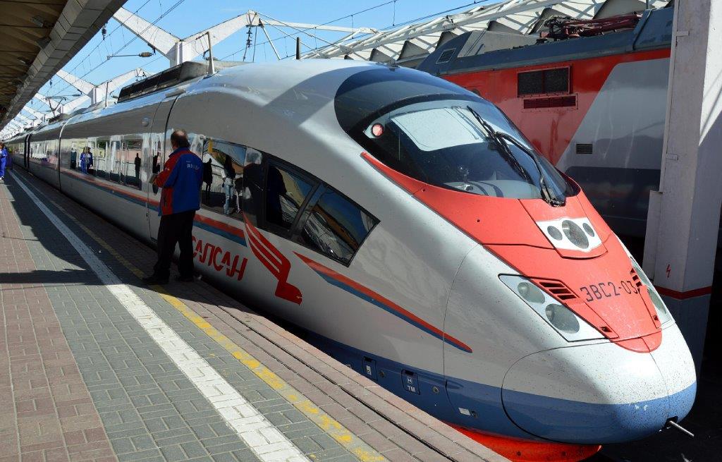 La rame Sapsan EVS2-03 Valero Siemens est photographiée en gare de Moscou – Leningrad, le samedi 2 juin 2018. Copyright : FraPom