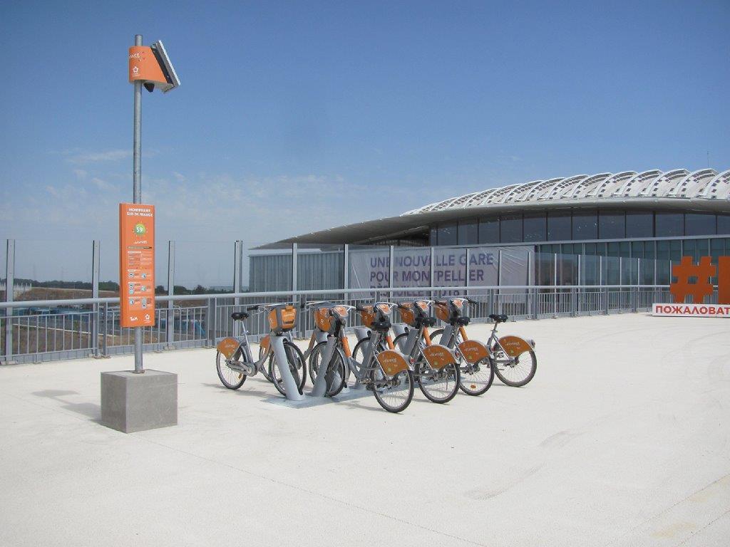 La station Vélomagg de la gare de Montpellier Sud de France, parvis Melvin-Jones, photographiée le samedi 17 juillet 2018. Copyright : Edouard Paris