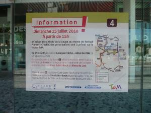 - 4, c’est le nombre de buts marqués par la France en finale de la Coupe du Monde de football qui s’est jouée sur la pelouse du stade Loujniki à Moscou, le dimanche 15 juillet 2018. Photo prise à la station « Georges Frêche – Hôtel de Ville », le même jour. Copyright : Edouard Paris