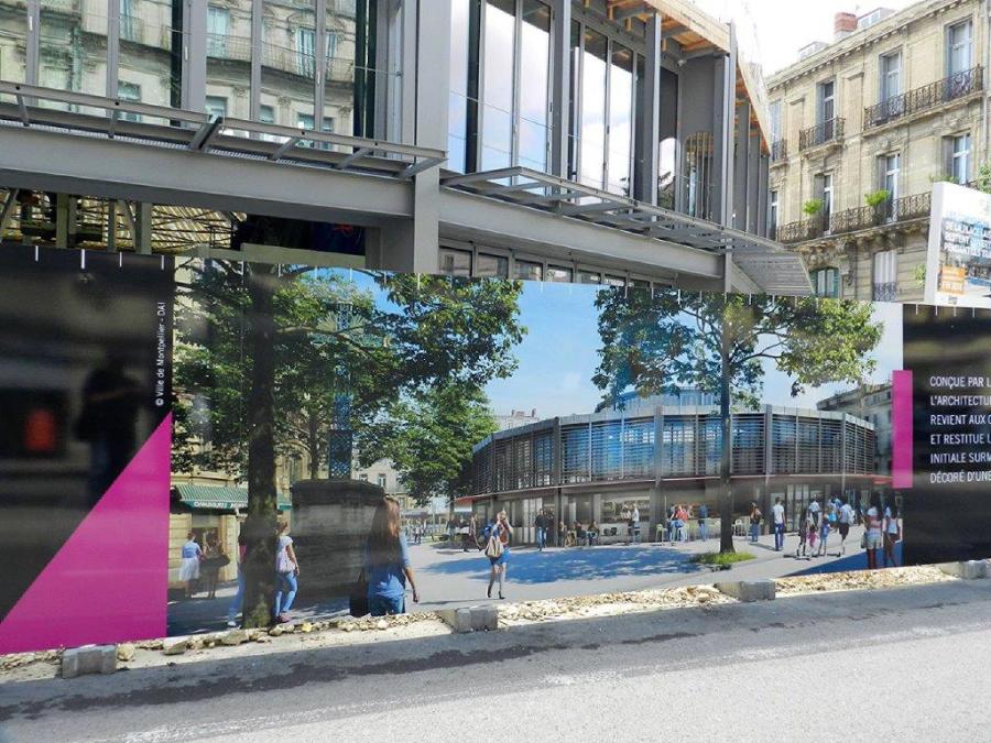 Visuel des futures halles de la place Alexandre-Laissac à Montpellier photographié le mardi 29 mai 2018. Copyright : Anje34