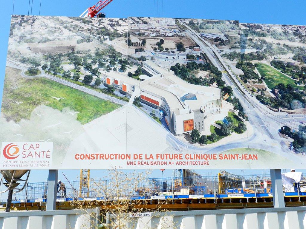 Visuel de la future polyclinique Saint-Jean à Saint-Jean-de-Védas photographié le jeudi 26 juillet 2018. Copyright : Anje34