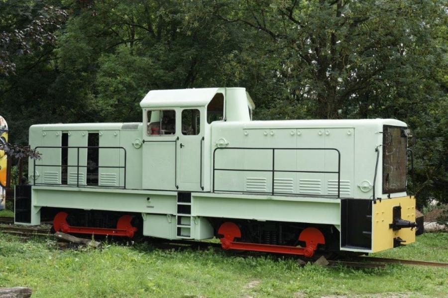 En gare de Gouarec, Chemin de fer touristique de Bon Repos, le jeudi 26 juillet 2018, photographie du locotracteur BB 401 de construction CFD ayant circulé sur le réseau corrézien (POC) puis, à la suite de sa fermeture, sur les Chemins de fer de Provence (CP). Copyright : Yvon Brument