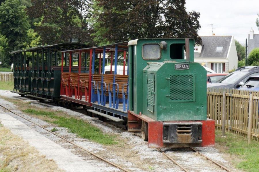 En gare de Gouarec (Côtes d’Armor), photographie du locotracteur Diema N° 1 et ses baladeuses qui assurent le train touristique du Chemin de fer de Bon Repos sur voie à l’écartement de 60 cm, le jeudi 26 juillet 2018. Copyright : Yvon Brument