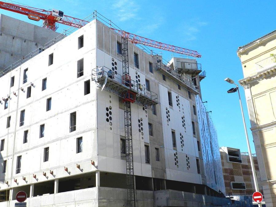 Façades du complexe architectural « Hôtel St-Roch – Belaroia » en cours de construction à l’angle des rues Jules-Ferry, à gauche, et Pagézy, à droite, le jeudi 14 juin 2018. Copyright : Anje34