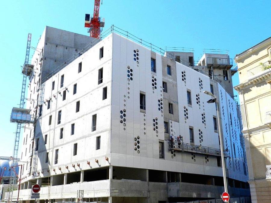 Façades du complexe architectural « Hôtel St-Roch – Belaroia » en cours de construction à l’angle des rues Jules-Ferry, à gauche, et Pagézy, à droite, le mardi 19 juin 2018. Copyright : Anje34