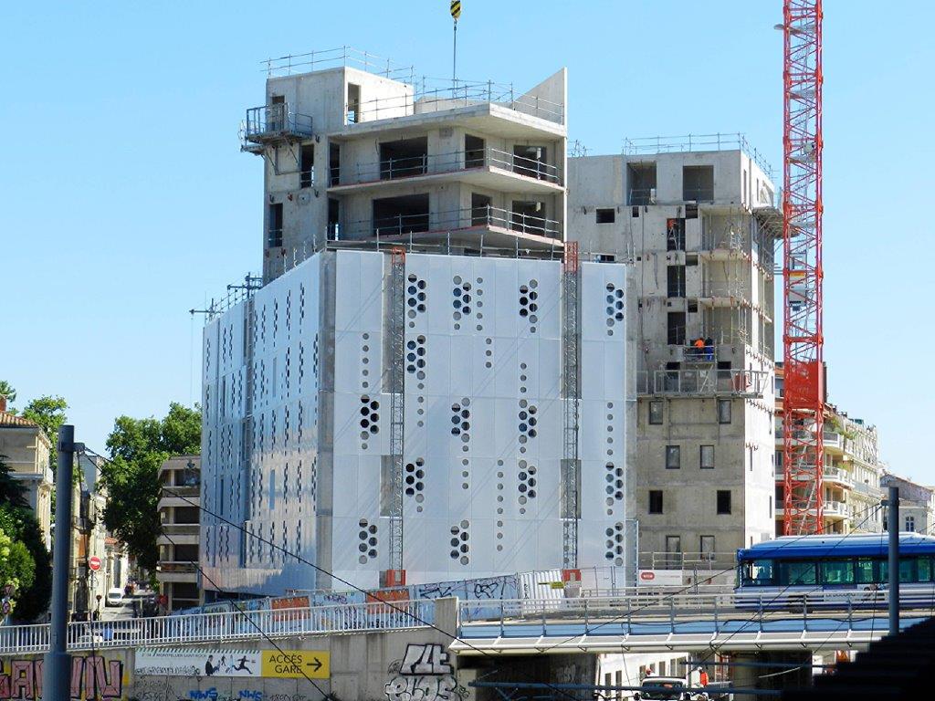 Vue du chantier « Hôtel St-Roch – Belaroia » depuis une terrasse du parking Saint-Roch, le mardi 19 juin 2018. Copyright : Anje34