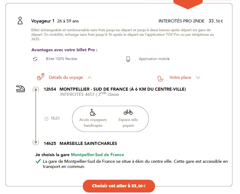 Sur le site oui.sncf, rubrique réservation, l’Intercités, qui quitte la gare de Montpellier Sud de France à destination de Marseille à 12h54, porte le numéro 4657. Capture d’écran en date du vendredi 24 août 2018