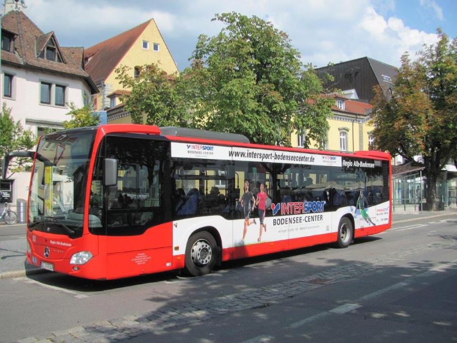 Bus Citaro Mercedes, aux couleurs de DB Regio Alb-Bodensee, photographié en centre-ville d’Überlingen (Allemagne), le samedi 18 août 2018. Copyright : Edouard Paris
