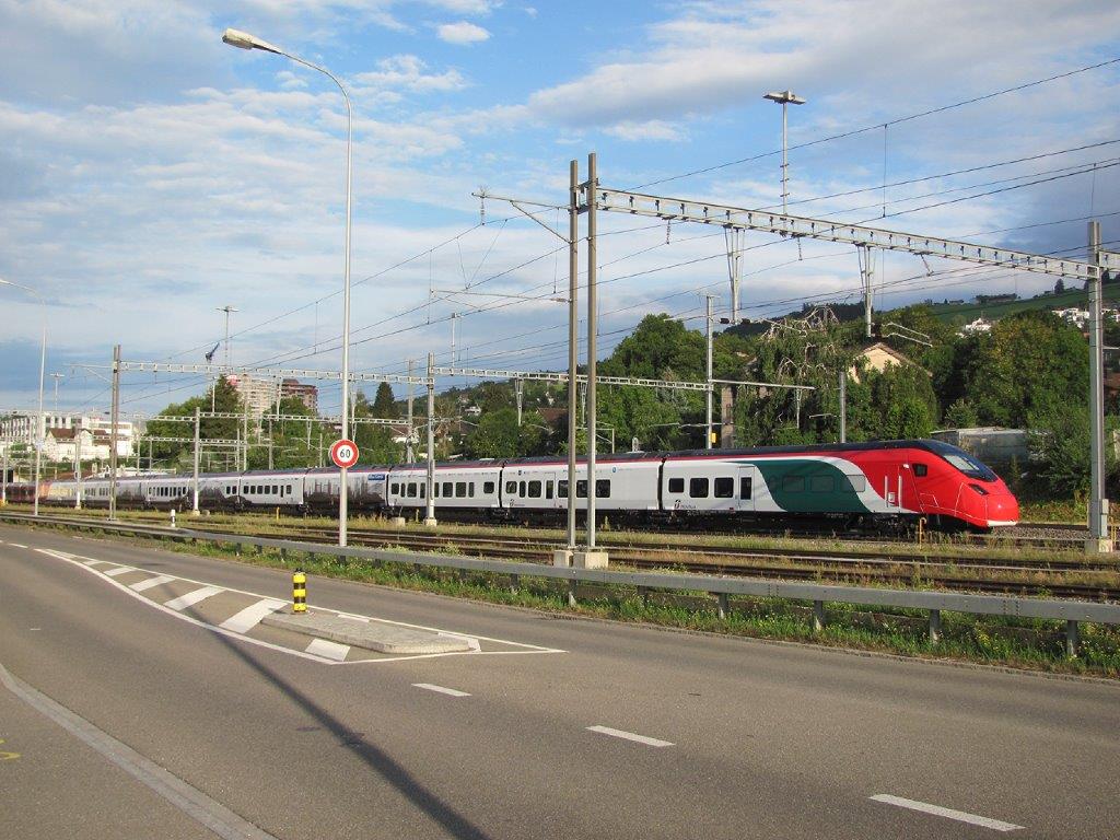 Une rame toute neuve Smile Stadler EC 250 Rabe 501 004 est photographiée sur un faisceau de la gare de Rorschach (Suisse), le mardi 14 août 2018. Copyright : Edouard Paris