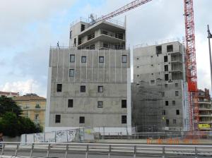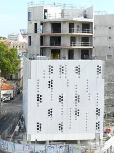 - Vue sur la façade côté Pont-de-Sète de l’ensemble architectural en construction « Hôtel St-Roch – Belaroia » à Montpellier, le samedi 18 août 2018. Copyright : Anje34