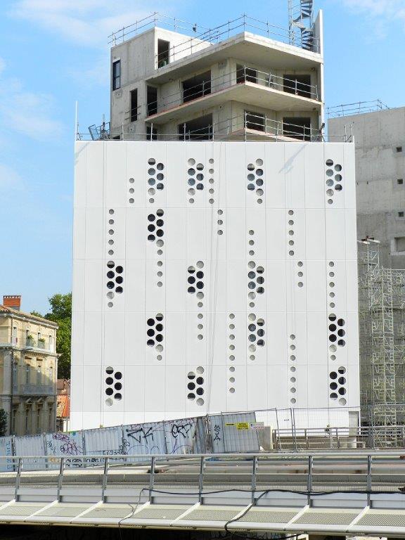 Vue sur la façade côté Pont-de-Sète de l’ensemble architectural en construction « Hôtel St-Roch – Belaroia » à Montpellier, le jeudi 23 août 2018. Copyright : Anje34