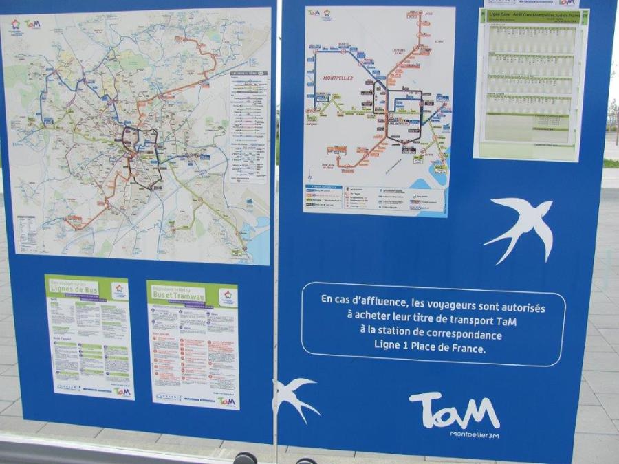 En cas d’affluence, voyager sans titre de transport TaM Montpellier 3M dans la navette bus entre la gare Montpellier Sud de France et Place de France est toléré. Photo prise le samedi 15 septembre 2018, arrêt parvis sud. Copyright : Edouard Paris