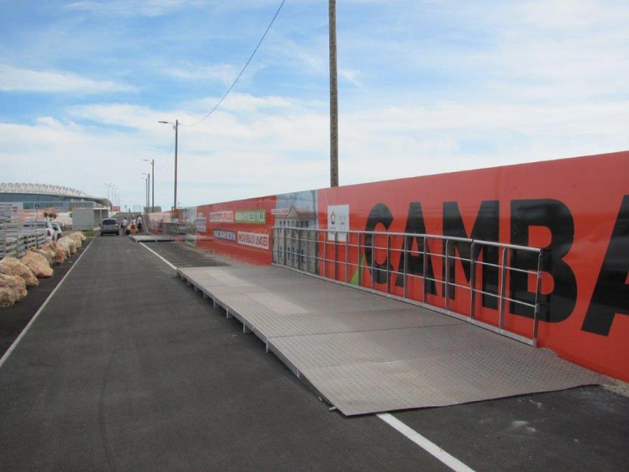 Côté parvis nord-ouest de la gare de Montpellier Sud de France, la solution de rechange, à savoir le nouveau terminus de la navette bus desservant la gare excentrée, n’est pas encore opérationnelle le samedi 15 septembre 2018. Copyright : Edouard Paris