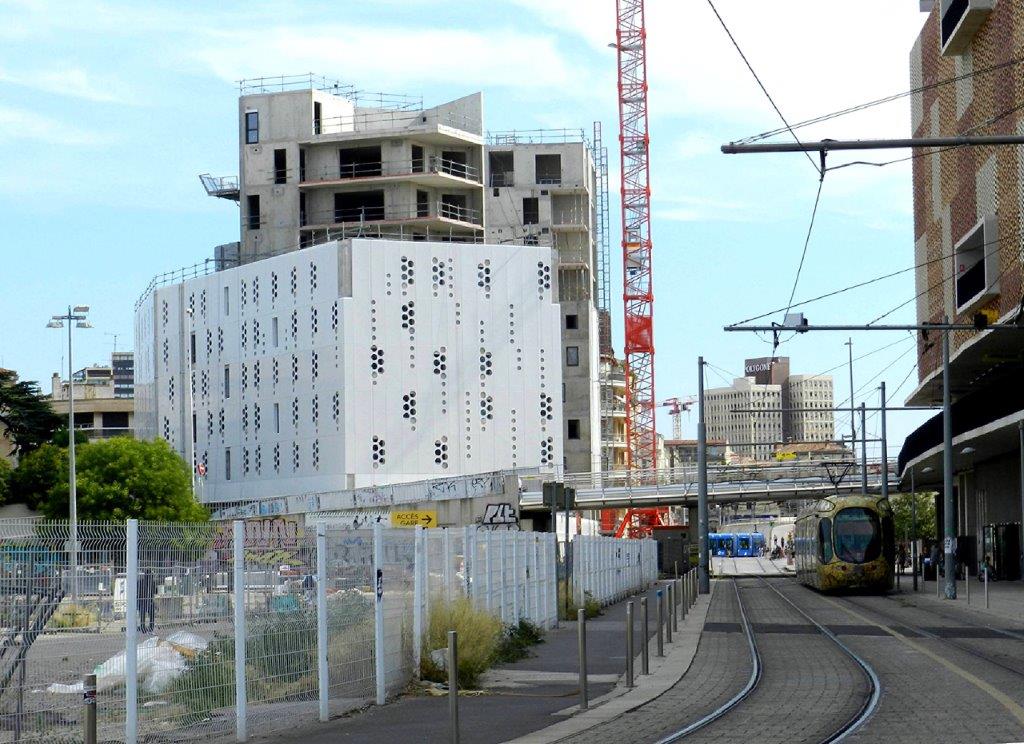 Vue sur le chantier « Hôtel St-Roch – Belaroia » depuis la rue Alexandra David-Néel à Montpellier, le samedi 18 août 2018. Copyright : Anje34