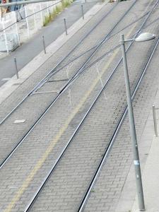 2. les aiguillages de Montpellier semblent particulièrement peu fiables, au point que les trams marquent l’arrêt avant chacun pour que le conducteur puisse vérifier leur position. Heureusement que les aiguillages de la SNCF sont plus fiables et ne nécessitent pas que les trains s’y arrêtent!
