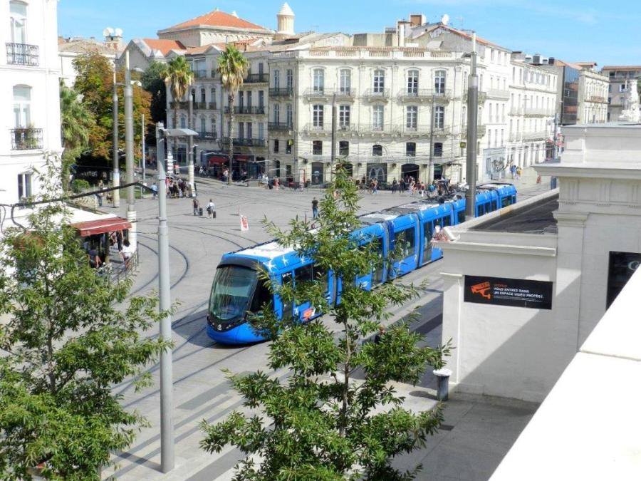 Place Auguste-Gibert à Montpellier, le samedi matin 15 septembre 2018, la rame 2092 Citadis 402 Alstom opérant sur la ligne 1 regagne son trajet normal vers le terminus « Odysseum ». Copyright : Anje34