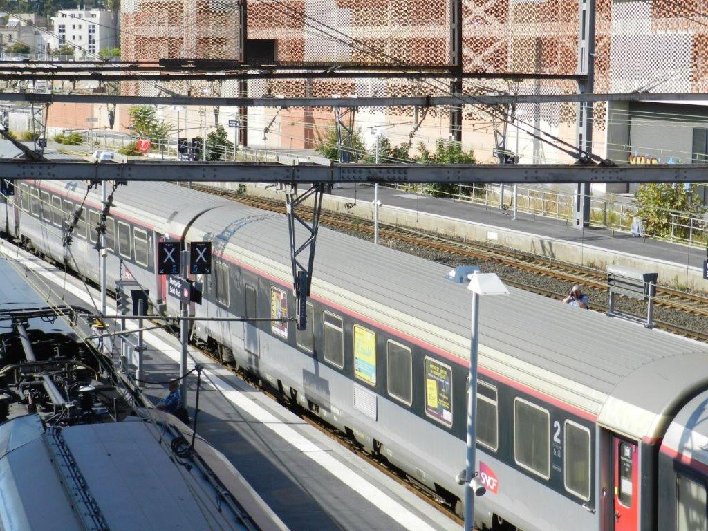 Près de deux semaines après la fermeture de l’exposition « Picasso -Donner à Voir » au Musée Fabre de Montpellier, des voitures de l’Intercités 4760 Marseille – Bordeaux en assurent encore la promotion, ainsi qu’en atteste la photo prise le samedi 6 octobre 2018 à 12h01 en gare de Montpellier Saint-Roch. Copyright : Anje34
