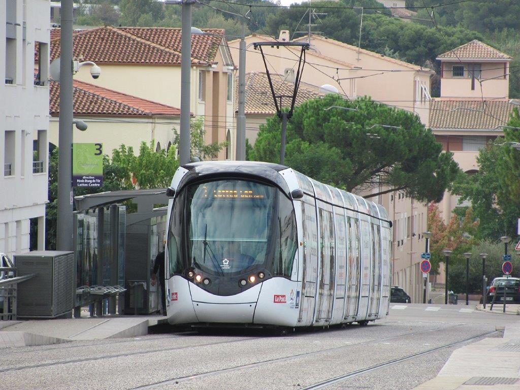 La rame 2099 Citadis 402 Alstom, aux couleurs de FuturaPolis Santé, est photographiée à la station « Celleneuve » sur la ligne 3, le samedi 13 octobre 2018. Copyright : Edouard Paris