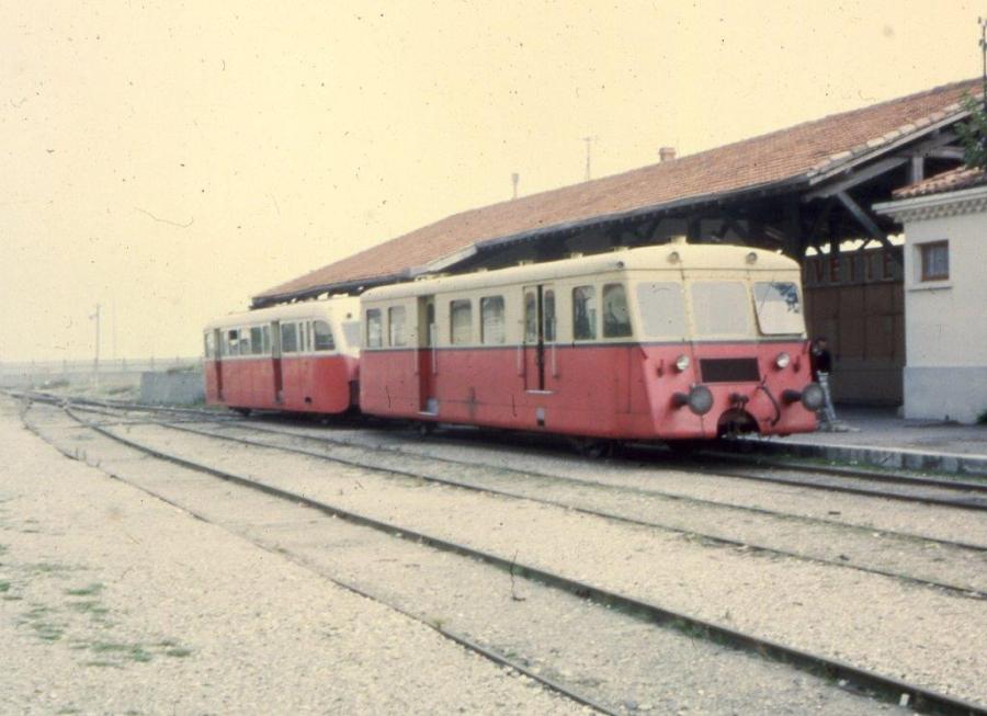 L’autorail De Dion Bouton Z-701 et sa remorque pilote R-1 du Petit Train de Palavas photographiés en 1968 en gare de Palavas-les-Flots, terminus de la ligne. DR. Collection jp autié
