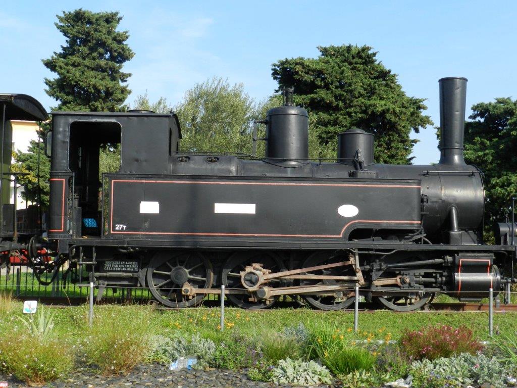 Locomotive série D n° 81 Schneider 040T du Petit Train de Palavas exposée à la hauteur du rond-point des Prés d’Arènes à Montpellier. Photo prise le jeudi 25 octobre 2018. Copyright : Anje34