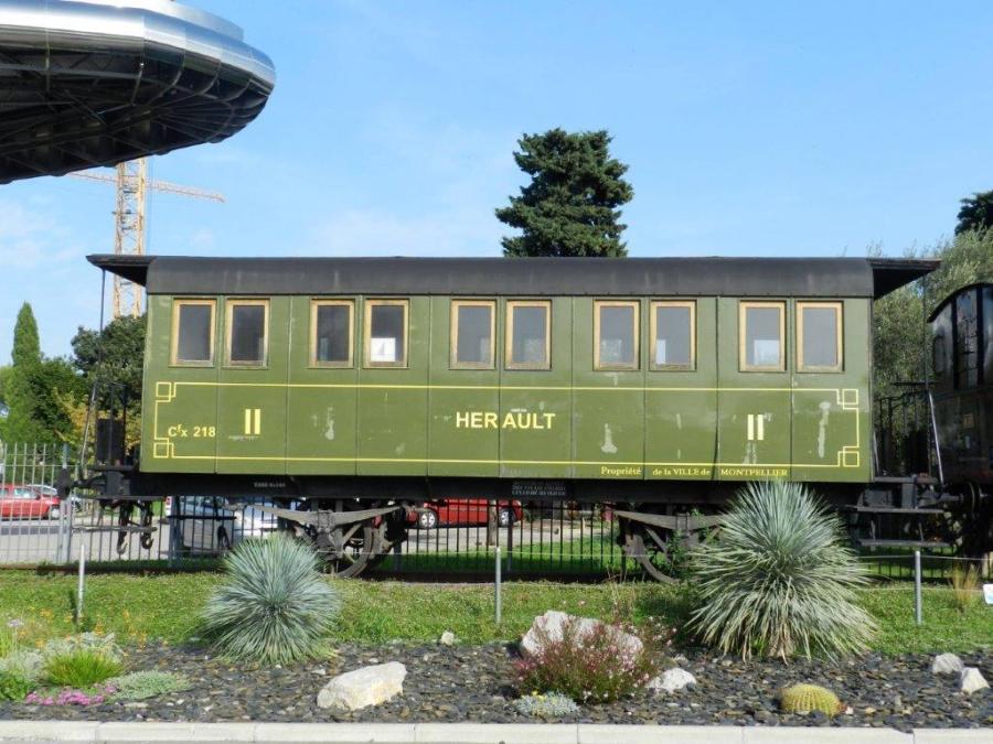 Voiture emblématique du Petit Train de Palavas exposée à la hauteur du rond-point des Prés d’Arènes à Montpellier. Photo prise le jeudi 25 octobre 2018. Copyright : Anje34