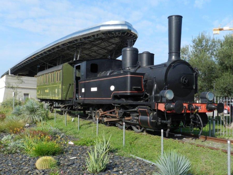 Locomotive et voiture du Petit Train de Palavas exposées à proximité de la médiathèque Federico Garcia à Montpellier. Photo prise le jeudi 25 octobre 2018. Copyright : Anje34