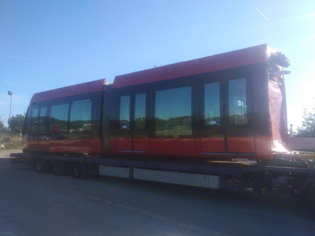 Photographie d’un autre des trois convois exceptionnels acheminant la rame 039 Citadis 405 Alstom à destination de Nice, à Salon-de-Provence, le jeudi 25 octobre 2018. Copyright : Léo F