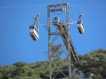 - Les deux cabines du téléphérique (Cable Car) de Gibraltar vont se croiser à la hauteur de la station intermédiaire « Ape’s Den » (la tanière du singe). Photo prise le lundi 29 octobre 2018. Copyright : Edouard Paris