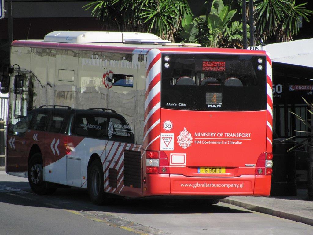 Un bus urbain court, opérant sur la ligne 4, est photographié sur Line Wall Road au moment où il quitte l’arrêt « Orange Bastion », le lundi 29 octobre 2018. Copyright : Edouard Paris