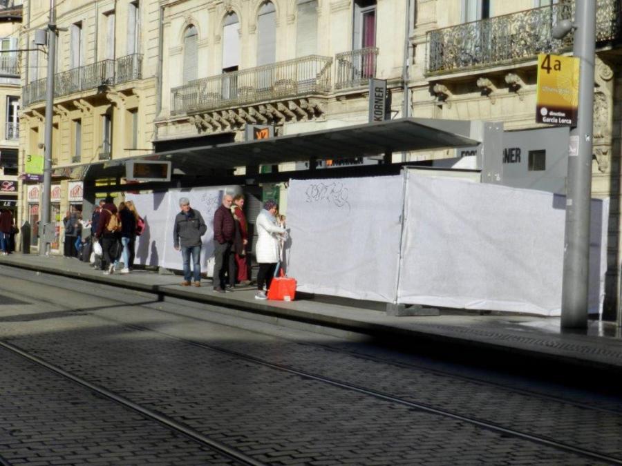 La station de tramway « Observatoire » des lignes 3 et 4 de tramway, située à la hauteur des nouvelles halles Laissac, fait peau neuve. Photo prise le lundi 26 novembre 2018. Copyright : Anje34