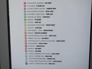 - Liste des 24 étaliers des nouvelles halles Laissac consultable aux six entrées du marché couvert. Photo prise le samedi 1er décembre 2018. Copyright : Edouard Paris