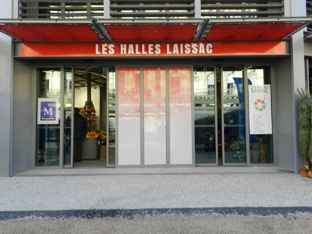 Photographie d’une des six entrées des nouvelles halles Laissac faisant face à la station « Observatoire » des lignes 3 et 4 de tramway, le samedi 1er décembre 2018. Copyright : Anje34