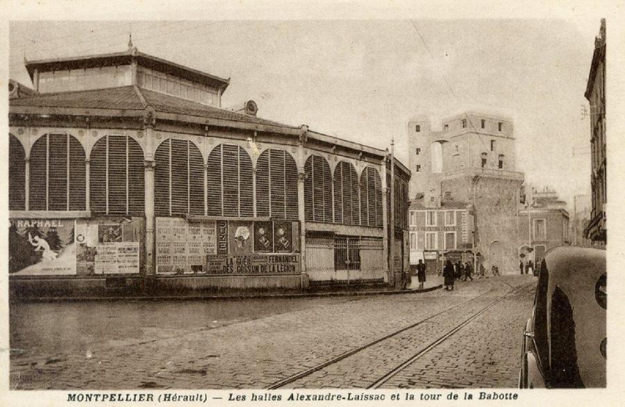 Première version des halles Alexandre-Laissac en 1936, côté rue Anatole-France. Carte postale collection jp autié