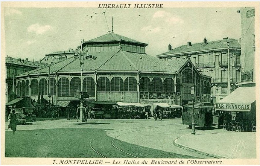 Première version des halles Alexandre-Laissac au début des années trente. Carte postale collection Michel Bozzola