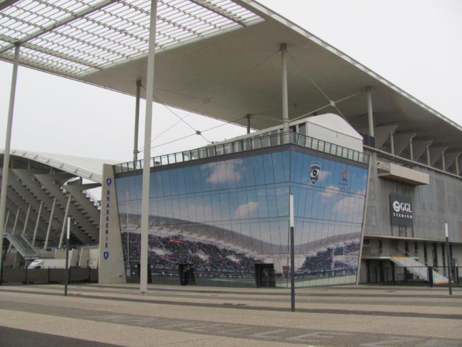 Parvis du GGL Stadium, 500 avenue de Vanières à Montpellier. La tribune « Ellis Park » se situe à droite sur la photo prise le dimanche 2 décembre 2018. Copyright : Edouard Paris
