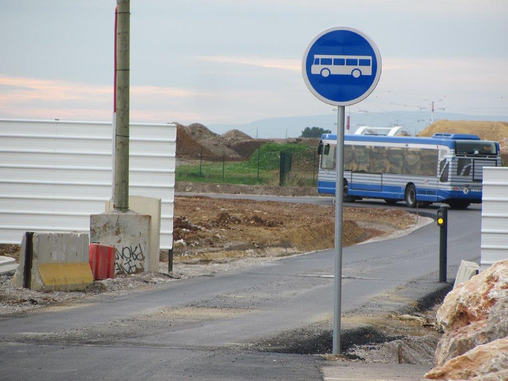 Avant d’atteindre le nouveau terminus « Gare Montpellier Sud de France » la navette doit accomplir un circuit sur une voie dédiée protégée par une borne rétractable automatique. Photo prise le samedi 15 décembre 2018. Copyright : 15 décembre 2018. Copyright : Edouard Paris