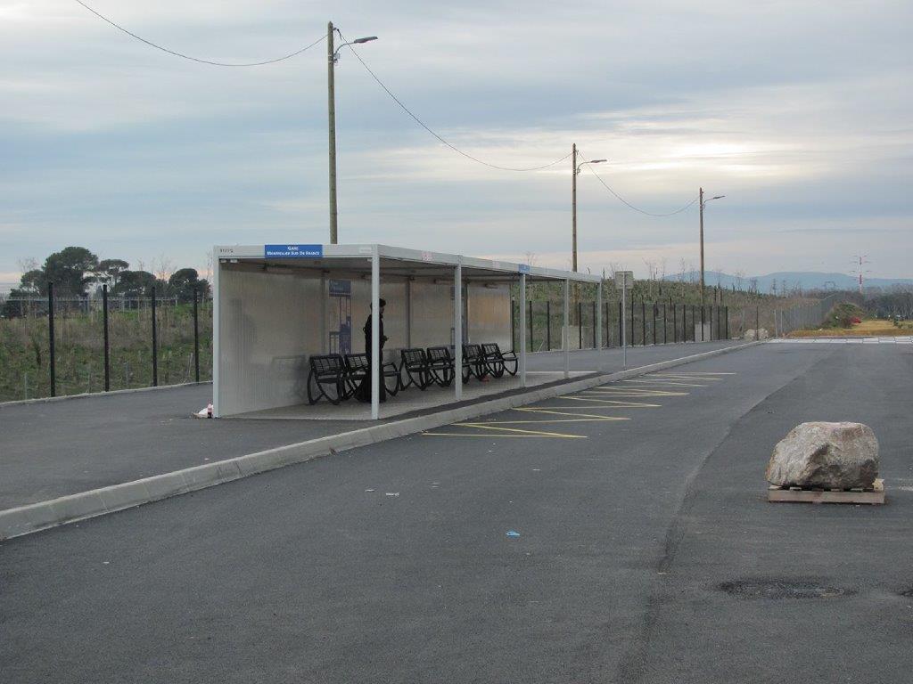 Nouveau terminus « Gare Montpellier Sud de France » côté nord-ouest de la gare excentrée Montpelliéraine. Photo prise le samedi 15 décembre 2018. Copyright : Edouard Paris