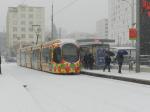- Une rame Citadis 302 Alstom est photographiée sous la neige au moment où elle se trouve à l’arrêt à la station « Mas Drevon » de la ligne 2, quai direction « Saint Jean de Védas », le mercredi 28 février 2018. Copyright : Anje34