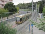 - La rame 2099 Citadis 402 Alstom, aux couleurs de FuturaPolis Santé, à destination du terminus « Lattes Centre », est photographiée peu après son départ de la station « Celleneuve » sur la ligne 3, le samedi 13 octobre 2018. Copyright : Edouard Paris
