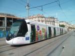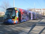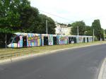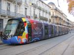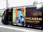 - Une des deux motrices de la rame 2098 Citadis 402 Alstom, aux couleurs de l’exposition « Picasso – Donner à voir », photographiée à la station « Comédie », le mardi 5 juin 2018. Copyright : Anje34