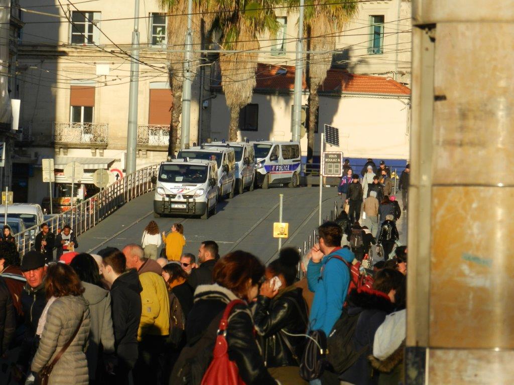 Dans l’après-midi du samedi 5 janvier 2019, la gare de Montpellier Saint-Roch a été évacuée. Sur la photo des voyageurs prennent leur mal en patience à l’extérieur. Copyright : Anje34