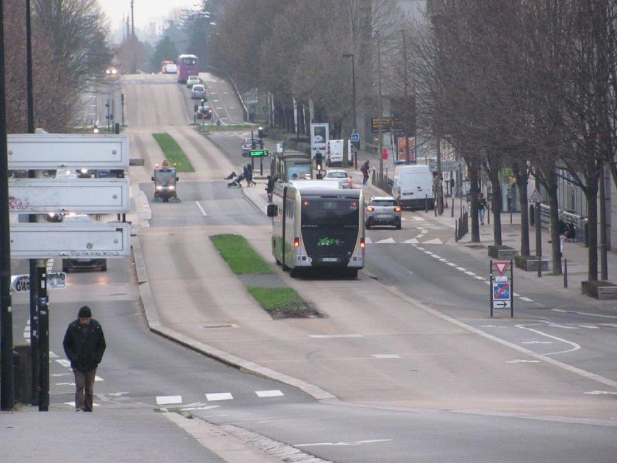A Nantes, le bus articulé 715 O 530 Citaro G GNV Mercedes-Benz est photographié avenue Jean-Claude-Bonduelle sur la plateforme dédiée de la ligne 4 de BusWay, à l’approche de la station « Cité Internationale des Congrès », le lundi 7 janvier 2019. Copyright : Edouard Paris