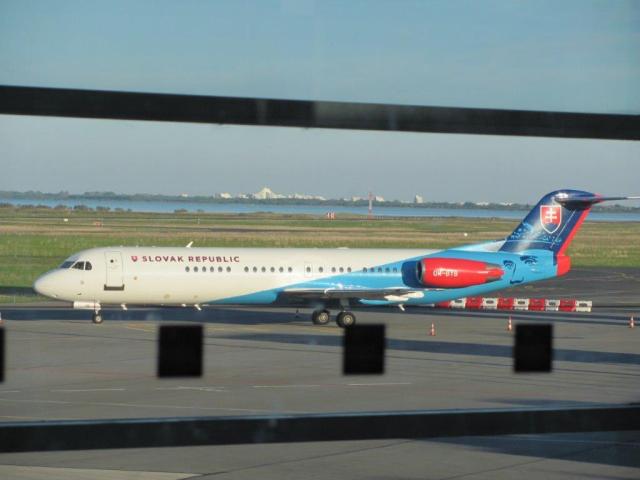 Un Fokker 100 aux couleurs de la République slovaque, immatriculé OM-BYB, est photographié sur le tarmac de l’aéroport de Montpellier Méditerranée, le mardi 23 octobre 2018. Copyright : Edouard Paris