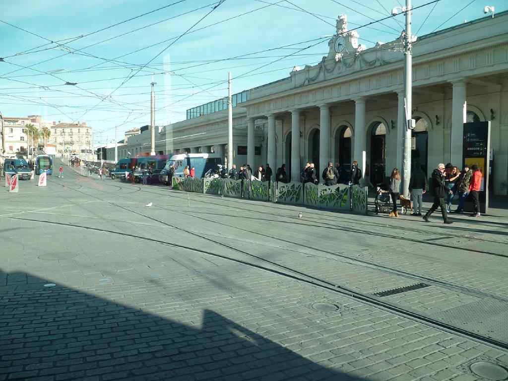 Photo prise à bord de la rame 2070 Citadis 402 Alstom, opérant sur la ligne 3, à la hauteur de la place Auguste-Gibert, où on peut apercevoir des véhicules de gendarmes mobiles, quelques mètres avant qu’elle ne retrouve son itinéraire habituel, le samedi 26 janvier 2019 à 15h32. Copyright : Edoaurd Paris